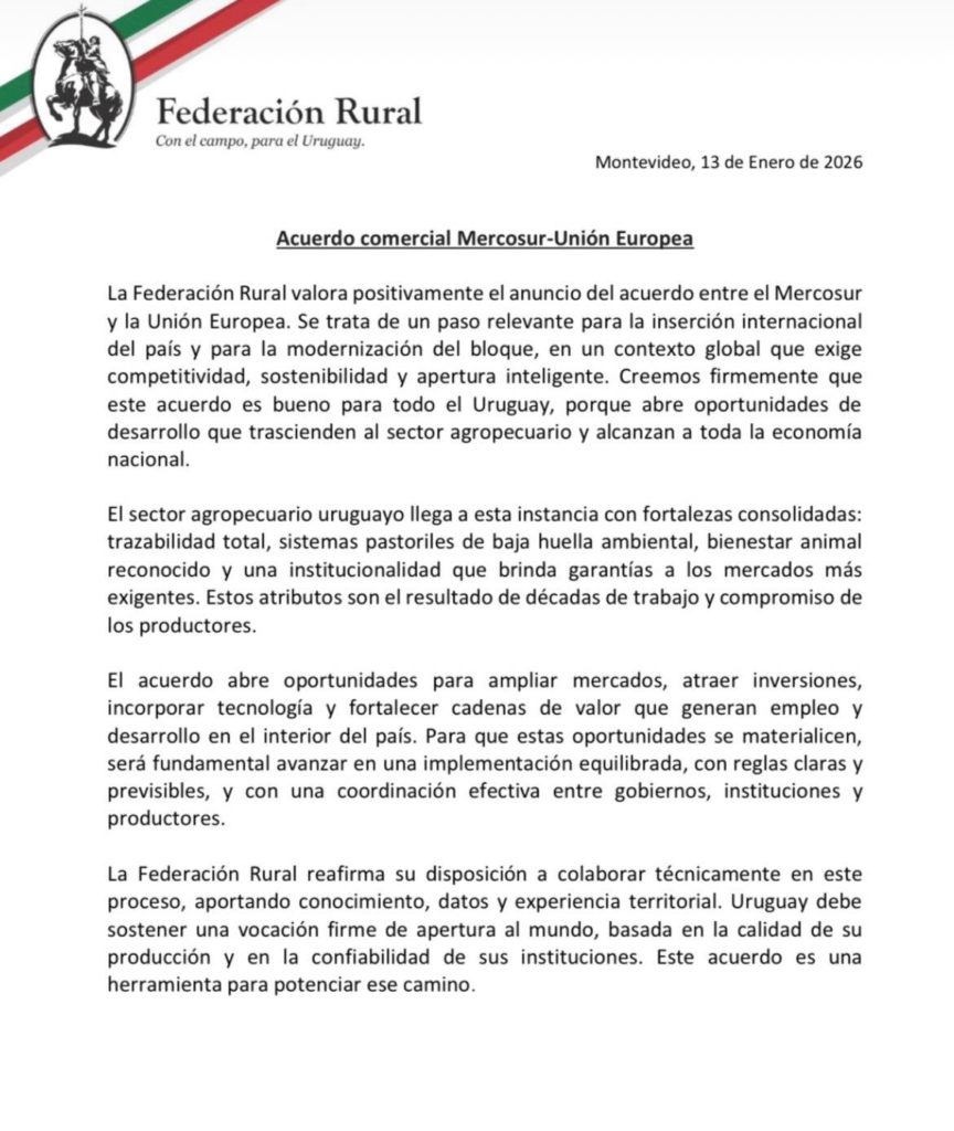 Más allá de lo comercial, la entrevista en Contacto Rural dejó claro que para la FARM, el acuerdo es una herramienta de justicia social para la región. La meta es «generar desarrollo para nuestros países», permitiendo que el éxito exportador se traduzca en mejores condiciones de vida para las familias rurales y en el fortalecimiento de la economía de las naciones del bloque.
