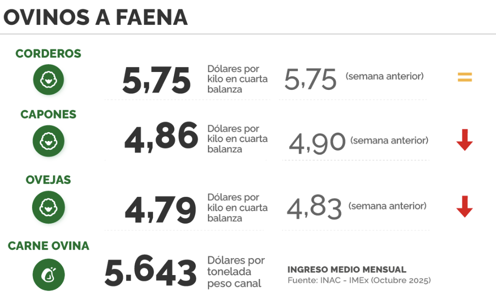 A diferencia del vacuno, el mercado de ovinos a faena experimenta un cambio en la dinámica. Con una mayor oferta de animales disponibles, las entradas a las plantas frigoríficas se han alargado. Esta situación ha llevado a algunas industrias a intentar proponer ajustes a la baja en los precios de referencia, aunque la demanda general se mantiene en un «buen nivel». Este segmento responde a la zafra y a la volatilidad histórica del stock ovino nacional, que ha mostrado descensos en los últimos años, según datos del MGAP.
