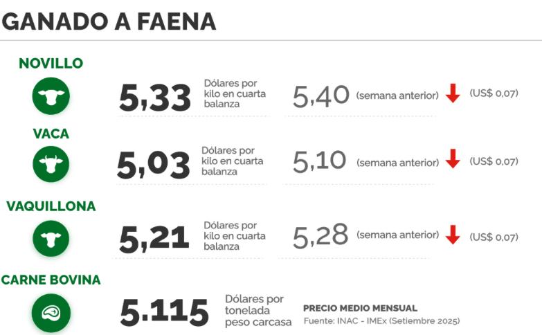 Las últimas semanas de octubre reflejan un mercado con matices. Mientras los ovinos y el dinamismo de la reposición ofrecen una señal positiva, la presión a la baja en el ganado a faena es una preocupación para los productores. Los consignatarios y operadores de la cadena cárnica monitorean de cerca la situación, en un intento por encontrar un equilibrio que permita la fluidez de los negocios en los próximos meses.