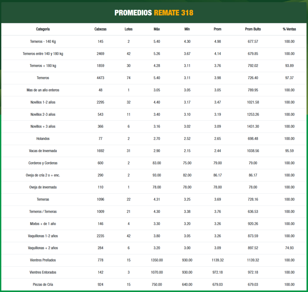 El consorcio Plaza Rural finalizó su remate número 318 con un balance sumamente positivo, destacándose por una colocación casi total de la oferta y valores que, en varias categorías, alcanzaron niveles históricos. En un mercado marcado por la alta demanda, la oferta de más de 16.000 vacunos encontró una respuesta ágil por parte de los compradores.